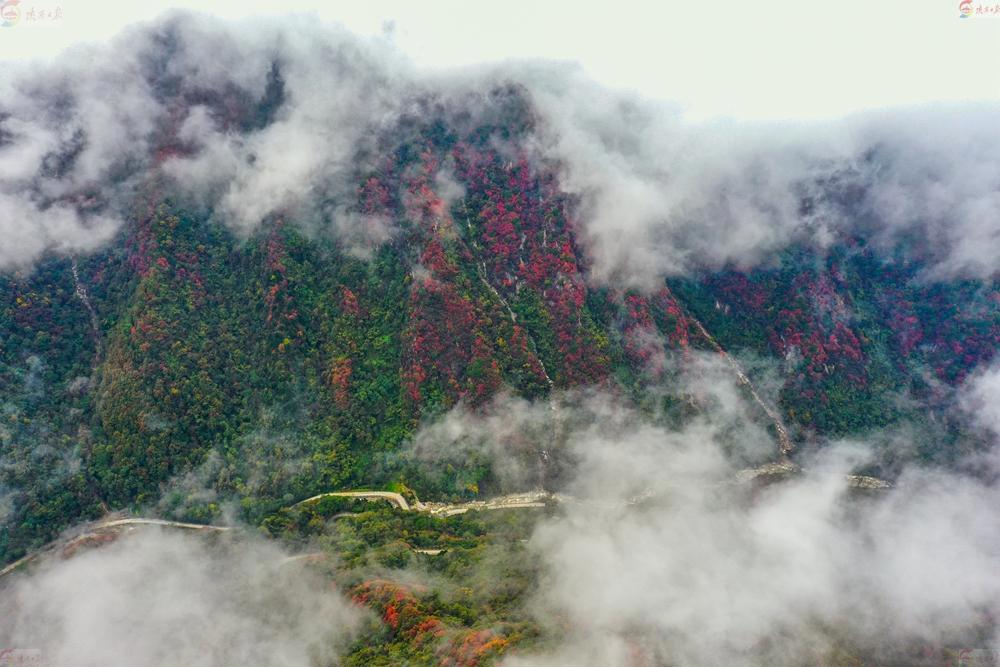 10月19日,一場(chǎng)秋雨后,位于秦嶺北麓,終南山子峰-翠華山,漫山遍野云霧繚繞,宛如仙境;