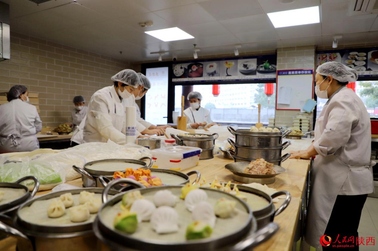 德發(fā)長創(chuàng)建于1936年,作為一家中華老字號,一道具有濃郁文化特色的“千古風(fēng)味”餃子宴已然成為西安的一張“金色名片”。高珊是德發(fā)長鐘樓店的一名非遺傳承人,那些倍受顧客歡迎、形狀各異的餃子正是出自她們團(tuán)隊之手。