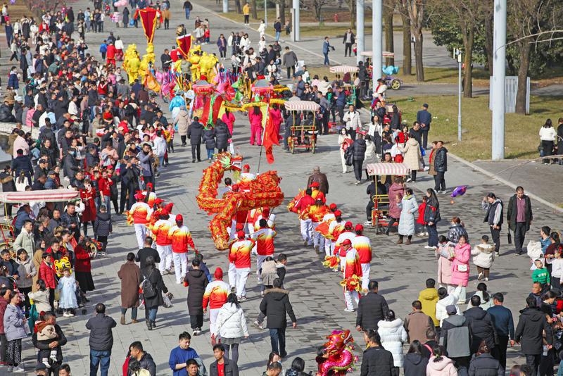 2月10日,西安樓觀生態(tài)文化旅游景區(qū)游人如織、熱鬧非凡,眾多市民游客到這里感受熱鬧祥和的新春氛圍。春節(jié)假期,樓觀景區(qū)推出以“到樓觀看社火逛大集”為主題的新春系列活動,鏗鏘的鑼鼓響徹云霄、歡騰的舞龍云翻乾坤、地道的竹馬看點十足,熱鬧的社火精彩紛呈......還有來自天南海北的特色美食,聚攏起秦嶺山下的煙火大集,為廣大市民游客帶來一場豐富多彩、傳統(tǒng)地道的年俗之旅。